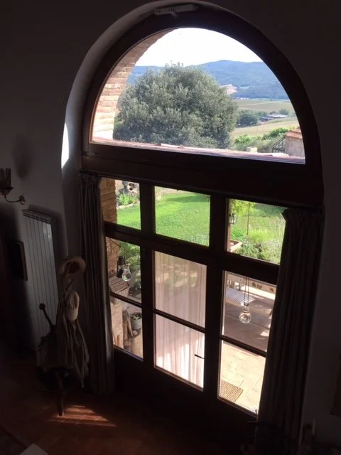 Yet we are creatures of habit. Over the past year and a bit that we have made this barn our home, I have split my writing in it between two places: the novel and its revision were done at my desk. The blog I wrote from my cantuccio (nook) by the fireplace from where I could look out the big glass door to the garden, the stone steps and the gate, while once in a while turning to the fire for a few moments of mesmerization.