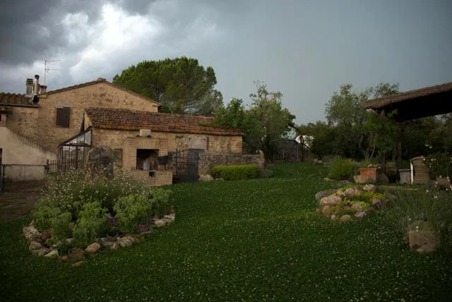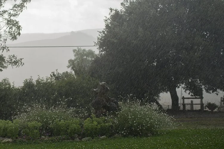 For the first hour the sunbaked earth refused to accept it, sending rivers of water gushing into ditches and gullies. Then, in the second hour, as if understanding that such an outburst is hard to take, the rain softened to a steady, straight-down rhythm and we watched as the earth softened; watched as the rain reached the roots of suffering trees and plants; the roots soaking up the heavens, the foliage becoming plump and upright, the air cool and kind again, the house breathing in the sweetness through the pores of opened doors and windows. And so evening arrived, cleansed and calm.