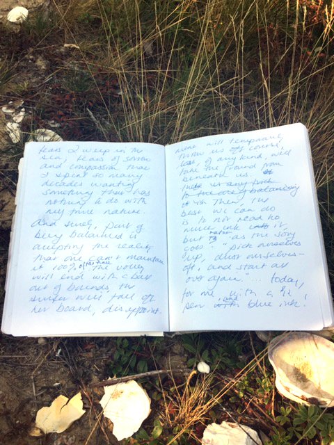 And surely, part of being balanced is accepting the reality that one can’t maintain it 100% of the time: the volley will end with a ball out of bounds, the surfer will fall off her board, disappointment will temporarily throw us off course, loss, of any kind, will take the ground from beneath us. Then, the best we can do is not to read too much into it but rather, as the song goes, “Pick ourselves up, dust ourselves off, and start all over again.”….today, for me, with a $12 pen and blue ink!