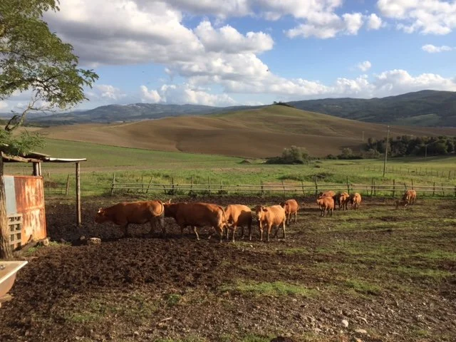 I received quite a few ‘dings’ this morning trying to fill out those forms, but I eventually outsmarted the passive aggressive ding bastard. It took me 3 hours, but I did it. Then I went up the hill to Gianni and Luana’s for a lunch of soup, chicken stuffed with ham, sautéed vegetables and, joy of joys, a whole lot of laughter. Now I’m back home, sitting at the outside table. Once in a while I gaze down to the far field and see the cows munching and mooing. It’s me and them….