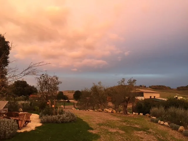 After six weeks in New York, my darling Joel came home last Thursday. After weeks of daily Skype-ing the man appeared in flesh and blood; the warmth and pulse of which can never be felt via the internet. I stood in our bedroom looking out the French doors from whence I could see his limo come into view at the top of the hill; watched it slide down and around the dusty curves of the dirt road and I raced to the garden gate and watched the tired length of him leave the car and come into my arms, and I into his. And time concertina-ed; not just the last 6 weeks, but 25 years and we stood on the threshold once more.