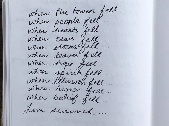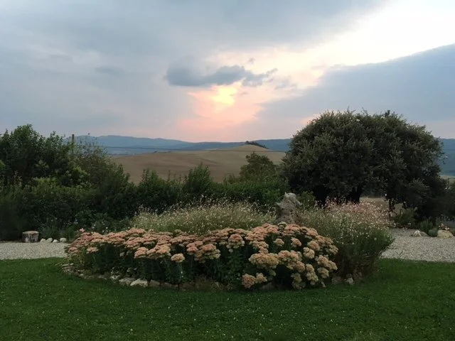 A gentle rain has begun to fall, its light rhythm tapping the overhead awning of the dondolo where I have come to write. Now a strong breeze arrives, stirring the garden to dance. It’s 3p.m., here in Tuscany; 9 a.m., in New York. This time 15 years ago on that blue September morn’, an act of terrorism forever changed the world.