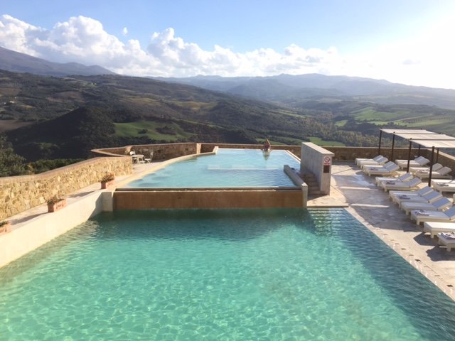 Two days later we took ourselves off to a local spa for 5 days of thermal waters and massage. Situated on its own hilltop in the Val d’Ocia, Castello di Velona is not only gob-smackingly beautiful but has a staff that is as kind and spirited as they are professional. My wonderful physiotherapist visited 3 times to give me treatments and work me out in the water and it was amazing how quickly the knee and hand achieved the next level of recovery.