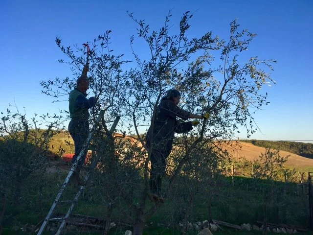 When we got home from the Spa, Silvia and Vincenzo were harvesting our olives. What goodness, to see these farmers, who are also our landlords and neighbors, up in the branches of our trees, doing what has been done here for centuries.