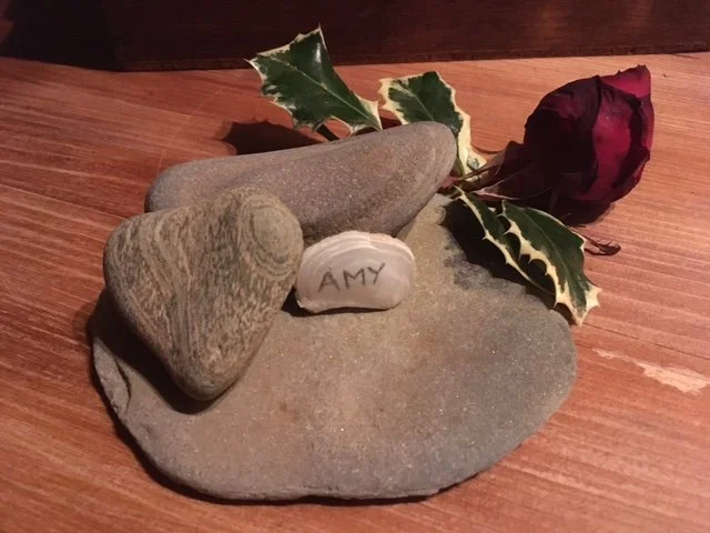 The last red rose from the garden, at rest with my long-gone Amy.