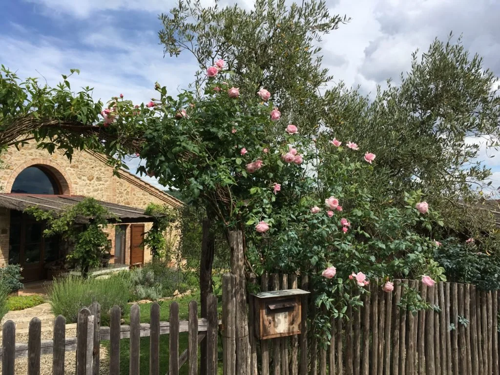 So, today I’ve made the commitment to re-see life in Tuscany; to tell you that this week alone – and this is a typical week here – Silvia, the farmer’s wife, has brought us baskets of spicy salad greens grown from seeds that our friend Scout gave her. Luca and Antonello, the stone masons, were here every day putting in my little stone stairway, remodeling the outdoor fireplace, placing stepping stones in the gravel path and widening the rose arch at the garden gate.