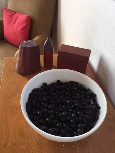 In a little while I’ll go into the library where two big crocks of olives have been sitting in coarse salt for 2 weeks. It has not been a good year for olives in Italy because an unexpected frost in the spring killed the blossoms. But the three big old trees named after our children were loaded with olives, which we harvested three weeks ago. There were not enough to make oil, but too many to cure for eating so we gave lots away. The rest we washed, drained and put in wicker baskets to dry by the fire. Then Luana came by and showed us how much salt to add. Every evening I turn them in the crocks allowing those on top to have their turn in the salt, which by now is brine. On Tuesday Luana will return to help me rinse them and put them in jars with oil and garlic. Some will get pepperoncino added while others will get orange rind.