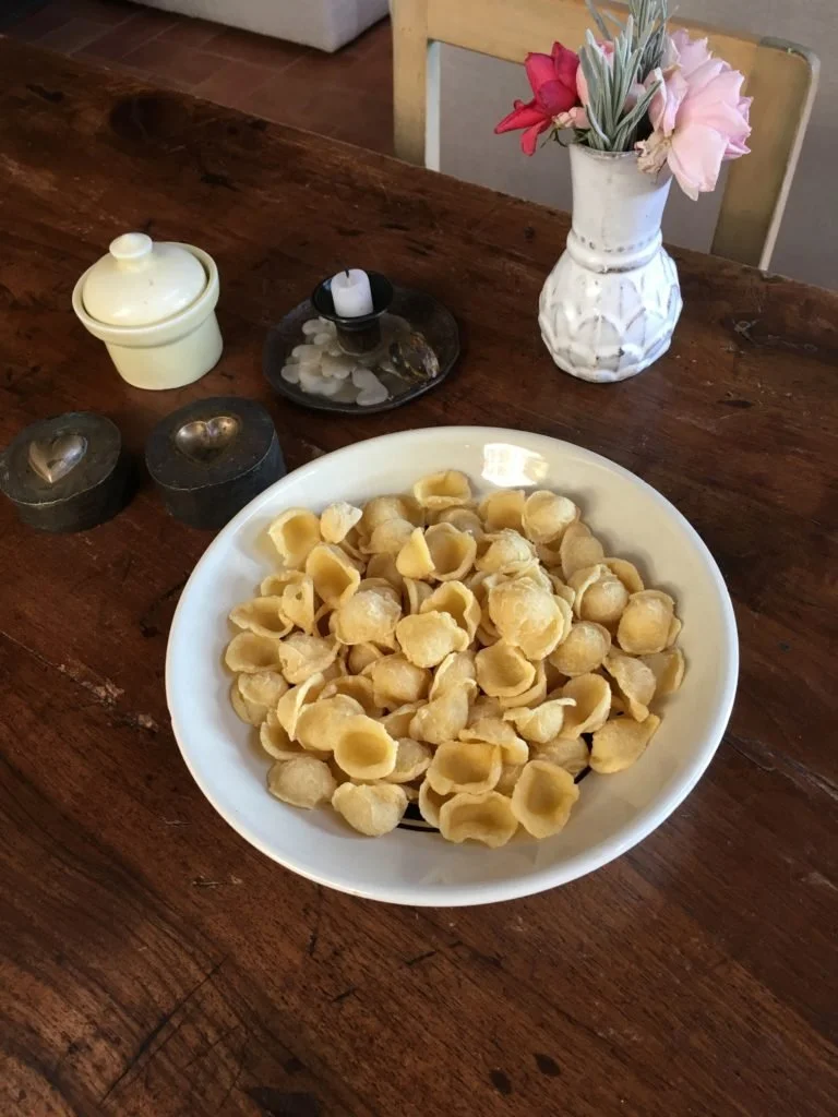 However, I did have the presence of mind to photograph these exquisite orecchiette that our neighbor, Silvia, had just made, with her own milled flour! Delicate and wholesome, we devoured the lot for dinner with a wonderful chicken liver ragù made by Joel