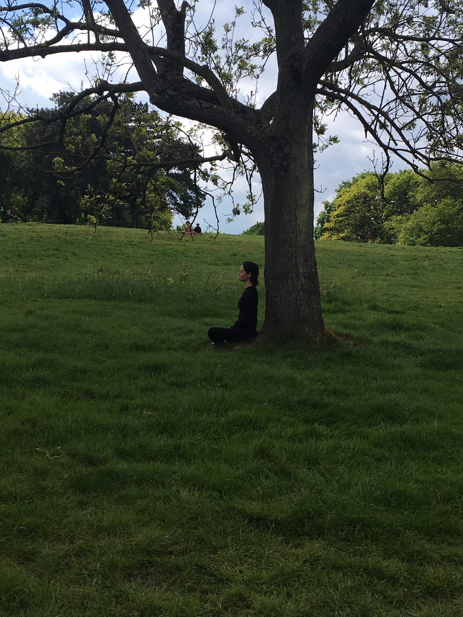 We took our last walk on Hampstead Heath a few days ago, mainly because it has become too crowded with joggers and irrepressible children and people who seem to have entered a stage of rebellion. Is rebellion one of the stages of grief? After an hour, feeling too anxious to enjoy the beauty of nature, we headed home. On the way I was stopped in my tracks by the sight of this young woman:
