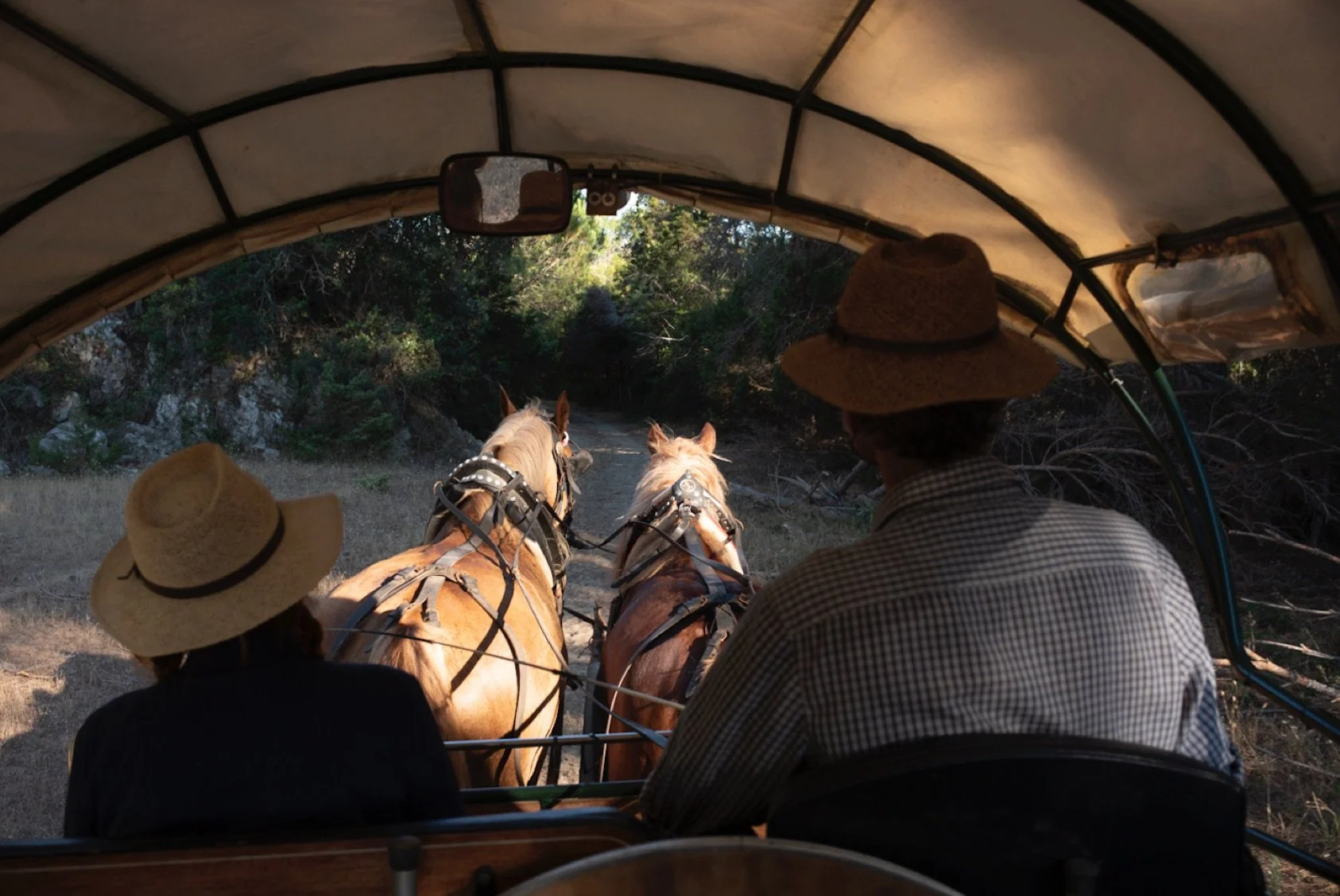 One late afternoon, we drove to the Maremma where a horse-drawn carriage was waiting for us. What joy to watch the little boy’s face as he looked in amazement at the two big “clip-clops.” So much more impressive compared to his little plastic one. The husband and wife owners rode us through the ancient national park, a journey of some 45 minutes that took us through wild flora and prehistoric rocks and grottos, all of which managed to be both eerily still and bristling with energy.