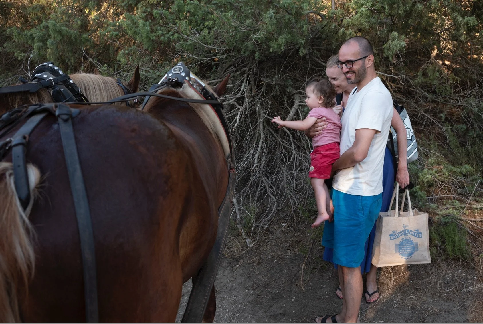 We came out to an isolated beach where we all bathed and the little fellow discovered the thrill of gentle waves greeting his feet. Then we sat down to dinner composed of ingredients from the carriage owners’ land, all the while watching the sun set over the sea. We sat in silence on the ride back through the wild land, watching the sky first turn gold through the silhouetted trees and then a deep throbbing red that seemed to last an eternity, all the while listening to the horses’ hooves as the carriage rocked us. It was the rhythm of a lullaby. It was the rhythm of life at the right pace; slow, measured, yet timeless.