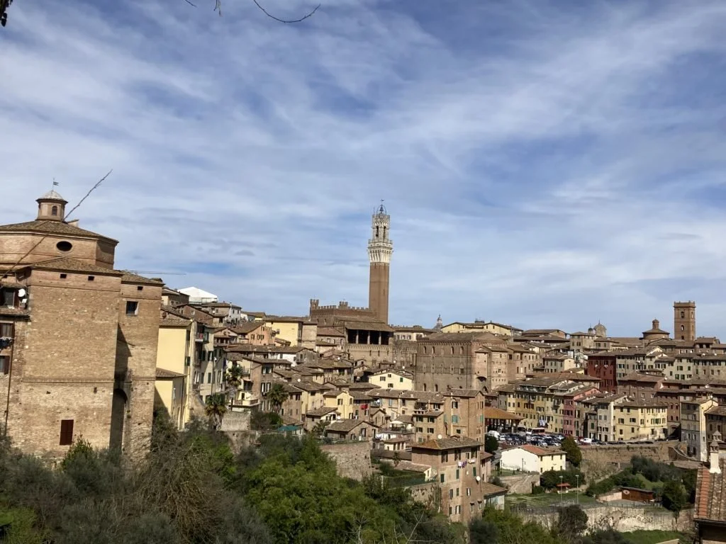 Walking back to the parking lot we stopped to take in the view of Siena, one of the most beautiful cities in the world. I stood there weeping; I wept with relief for having been treated so kindly and I wept because the city was silent; the cobbled streets empty, the Campo, that exquisite brick beach from which Siena radiates in ever widening circles, normally filled with students and workers and tourists laying in the sun, now lay deserted.