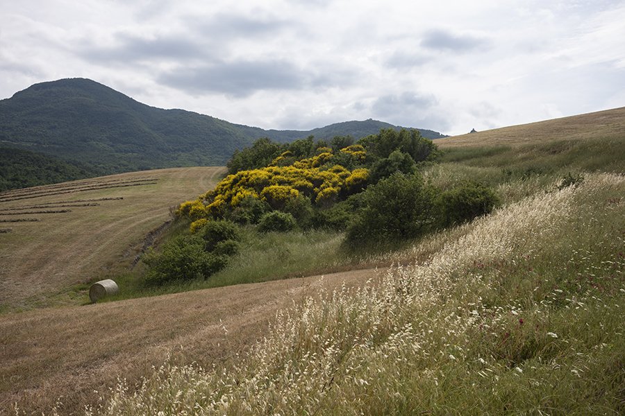 On Sunday, our friends, Gianni and Luana, understanding my anxiety of the next day’s surgery, came and got us in Gianni’s pick-up and drove us through the landscape of our valley, the Val d’Arbia, and on to the next, the Val d’Orcia. At one point we stopped and got out to look at the view. On the other side of the road a flock of newly shorn sheep nibbled at the ground. Just up the hill a mass of broom burst yellow against the grey sky and a sudden waft of wind carried it’s aphrodisiacal perfume to us.