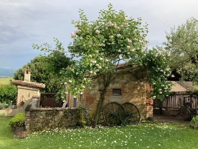 But the real feast was our conversation. Twenty-six years of shared memories from when we first came here to teach. We’ve been to christenings and baptisms, funerals and weddings. We talked of how much has changed in a quarter of a century. When we first came here there were no cell phones. We communicated with walkie-talkies and every evening we’d go into the village where Joel would call the New York studio from the pay phone…long gone. Gianni did have a fax machine in his rustic office and when a fax arrived for us, he’d leave it outside our door, a long-stemmed red rose holding it down.