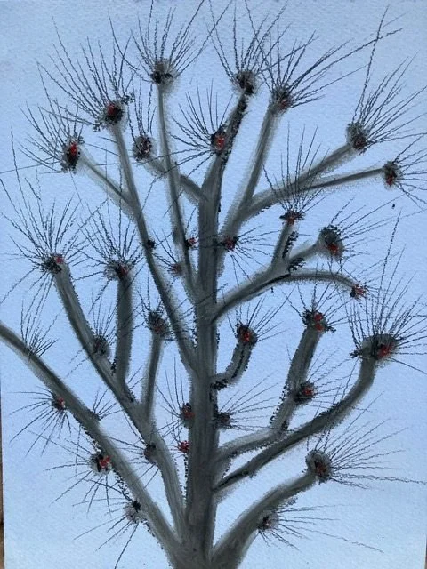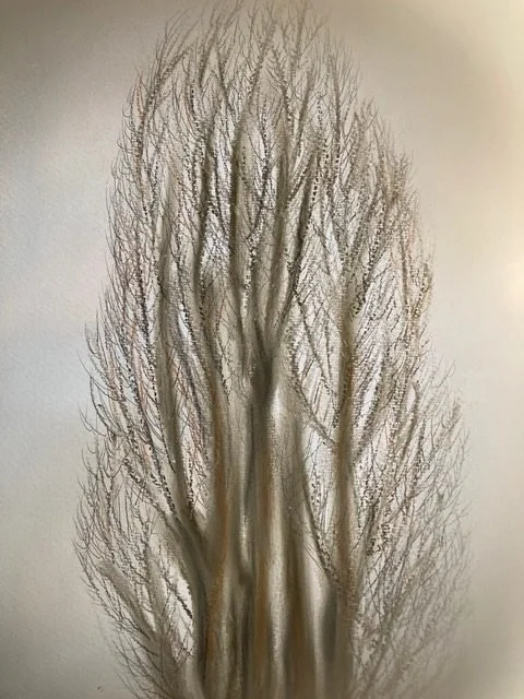 Vastly different from each other, they show us that there are different ways of being in this world; of surviving. The one almost angrily fisted made me shudder and thrill at the same time. Its defiant stance claiming its right to be here. Come summer it will disguise that part of its nature, dressed once again in its leafy finery. The other tree couldn’t appear more opposite; almost feathery in form, its branches staying in close contact to each other, its delicacy shivering in the raw air of an November day. These two trees stood on opposite sides of a narrow road and as I write about them now, they feel like a metaphor for where we all find ourselves these days: young/old, strong/vulnerable, vaccinated/unvaccinated, conservative/liberal, black/white, rich/poor, aggressive/fragile. At times this divisiveness is frightening and sad. Yet, like trees, we are of the same species and as different as we may appear on the surface, we are all rooted to the same planet. Perhaps the lesson we can take from trees, going forward into a new year, is that we need to help our roots entwine, support and nourish each other and in order to best do this we need to stop plundering the earth and nourish it instead.I wish you all peace and compassion, along with good health as we journey forward, branches reaching out to each other.
