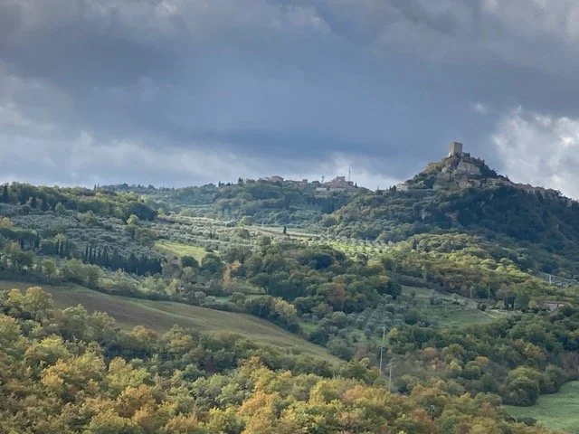 We also surrendered to a flood of feelings as we recognized the many ways we have been woven into this landscape and its culture. From the hotel bedroom window, we looked out and up to Rocca d’Orcia where, starting in 1995 we would escape during the middle weekend of The Tuscany Workshop which we taught for several years. For 2 days we’d sleep on a horsehair mattress in a 3 room inn, and nap on a bench under an enormous linden tree, drugged by its perfume-laden blossoms, lullabied by the buzz of a thousand pollen-collecting bees.